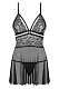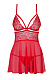Об этой сорочке бэби-долл коротко можно сказать так – романтичная и при этом невероятно сексуальная! Выполненная из полупрозрачной нежной сетки и цветочного кружева, она состоит будто из двух частей – мягкого лифа и расклешенной юбочки. Спинка практически полностью открыта: её украшают лишь скрещенные регулируемые бретели. Зона декольте декорирована бантиком и кулоном. Трусики-стринги в комплекте. В комплекте: сорочка, трусики-стринги.