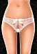 Кокетливые кружевные трусики из ажурного полотна, эротично декорированы маленькими атласными бантиками. Передняя и задняя часть белья соединяется на бёдрах двумя тонкими резинками, оставляя оголенные участки тела. Внизу расположен сексуальный интимный вырез, позволяющий придаваться страсти, не снимая белья.