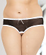 Обнаженный цветок любви пробуждает пламенное желание, а сетчатая материя, красиво обтягивающая упругие ягодицы, лишь усиливает возбуждение. Контрастный кант делает образ еще более кокетливым.