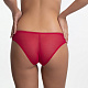 Трусы-бразилиана из полупрозрачного кружева с цветочным орнаментом. Тонкая и плоская резинка с краем пике по линии талии. Свободный кружевной край по линиям выреза бедер для легкости и незаметности под одеждой.