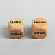 Два деревянных кубика в текстильном розовом мешочке. На одном кубике обозначены действия (танец, массаж, обнимашки и пр.), а на втором кубике то, как Вы должны это сделать - романтично, нежно, а может даже эротично!