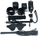 В набор входит абсолютно все, что может пригодиться для самой шикарной ночи в стиле БДСМ — наручники, оковы, кляп, плеть, закрытая маска на глаза, веревка для шибари и даже ошейник с поводком! Все девайсы выполнены в классическом цвете, который идеально подойдет как для мужчины, так и для женщины!