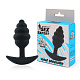 Черная ребристая анальная втулка с ограничителем - 9 см.