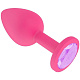 Розовая силиконовая втулка с сиреневым стразом - 7 см.