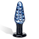 Красивая пробка для анальной стимуляции среднего размера. Ножка пробки выполнена из черного стекла, а макушка - из прозрачного и украшена бело-синим узором. Длина: 13,5 см.