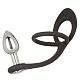 Серебристая анальная пробка с кристаллом и черным эрекционным кольцом Mini Plug