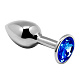 Серебристая анальная втулка с синим кристаллом Mini Metal Butt Plug Size S - 7 см.