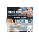 Черное упругое двойное кольцо для поддержания эрекции у мужчин. Меньшее колечко натягивается на основание эрегированного члена, а большее подхватывает мошонку.