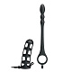 Закрытая силиконовая насадка на пенис и ребристый анальный стимулятор могут быть использованы как вместе, так и по отдельности. Выполнены в строгом чёрном цвете из нежного силикона. Рабочая длина насадки - 11,5 см., диаметр - 3,5 см.