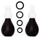 Вакуумный стимулятор для сосков черного цвета. Стимулятор прижимается к соску и сжимается груша, чтобы откачать воздух. Отпуская грушу, создается вакуум, который всасывает сосок. В набор входят дополнительные насадки разного диаметра. Диаметр силиконовой груши - 3 см.
