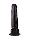 Фаллоимитатор с мошонкой на присоске чёрного цвета - 16,5 см.