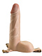 Пустотелый фаллопротез с мошонкой и ремешками для фиксации - 16 см.