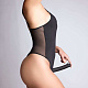 Спереди — гладкая микрофибра элегантно облегает силуэт. Сзади — прозрачная сетчатая ткань играет на контрасте, притягивая взгляд, а рельефный золотистый логотип добавляет яркий акцент. Минималистичная стринговская спинка подчёркивает смелость и утончённость.