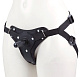 Черный женский пояс для фиксации насадок с вагинальной пробкой