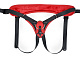 Можно зафиксировать кольцом любой фаллоимитатор на присоске (2 кольца в наборе комплекта с разными диаметрами). Для смены колец – необходимо расстегнуть кнопки ремней вокруг отверстия и поставить подходящее по размеру кольцо.