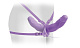 Фиолетовый двухсторонний страпон (с внутренним и внешним фаллоимитатором) с вибрацией. Может использоваться как с трусиками, так и без них. Водонепроницаемый. Вибрация регулируется с помощью выносного пульта. Длина вагинальной пробки - 12,1 см., диаметр - 3,8 см.