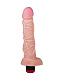 Крупный фаллос с большой розовой головкой и переплетением пышных вен с одной стороны ствола обещает сильные ощущения от проникновений в вагину.