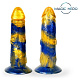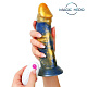 Желто-синий фантазийный вибратор с пультом ДУ - 21,5 см.