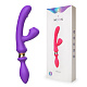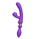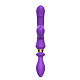 Фиолетовый двусторонний вибромассажёр с клиторальным отростком - 30 см.