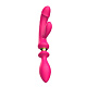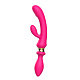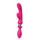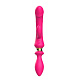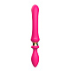 Розовый двусторонний вибромассажёр с клиторальным отростком - 30 см.