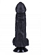 Черный вибратор-реалистик на присоске №26 с проводным пультом - 19,5 см.