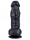 Черный вибратор-реалистик на присоске №5 с проводным пультом - 16 см.